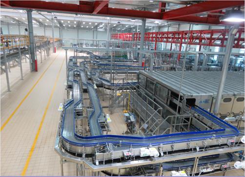 (2)主要设备:卸垛机、卸箱机、洗瓶机、灌装机、杀菌机、装箱机、码垛机、瓶箱输送系统、贴标机、清洗系统等